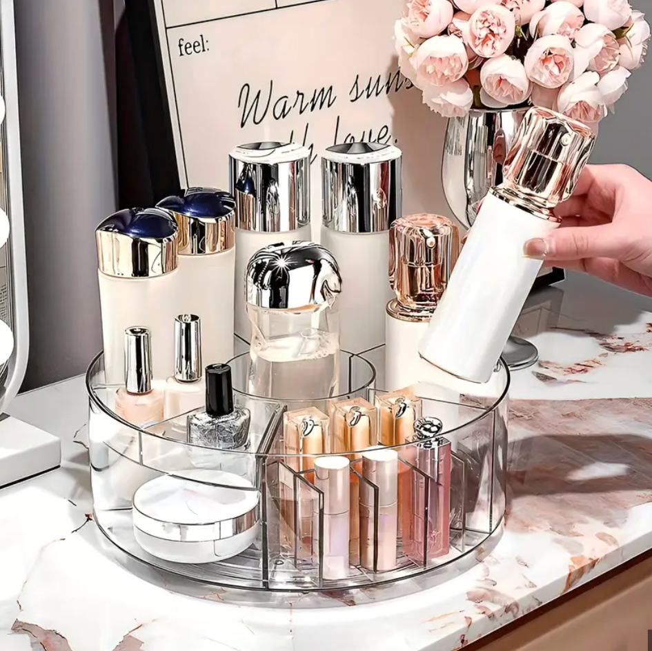 Rotating Makeup Organizer & Skincare Storage Box – Countertop Vanity Organizer for Cosmetics, Jewelry & Perfume